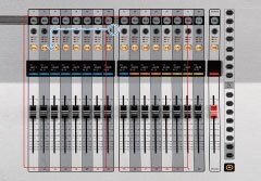 すべての入力を一度に表示できるようにレイアウトされたフェーダー群