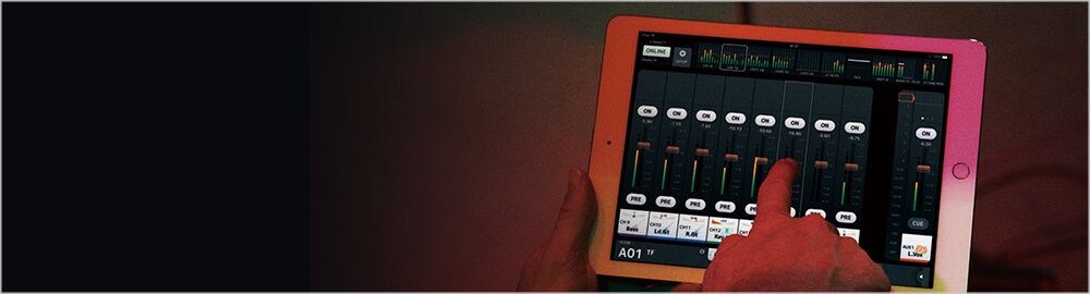 『TFシリーズ』のワイヤレスコントロールを可能にするiPad用アプリケーション「TF StageMix」を使用することで、客席やモニタースピーカー前などのリスニングポジションで音を聴きながらリモートミックスを行うことができます。
