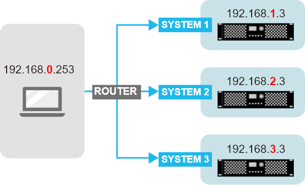 ProVisionaire Amp Editorはネットワーク内の異なるサブネット上のデバイスを制御することができます。つまり、複数のサブネット、複数のゾーンを個別に操作する必要があるテーマパークやショッピングモールなどの大規模施設においても、1台のコンピューターで必要なすべての制御を提供します。
