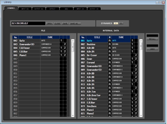 LibraryウィンドゥではQL 本体の各種ライブラリーを編集したり、コンピューターのドライブに保存されたライブラリーのファイルを読み込み、並び順やタイトルなどを変更したり、任意のライブラリーデータをリコールしたり、任意のライブラリーデータをQL 本体のライブラリーにコピーしたりすることができます。
