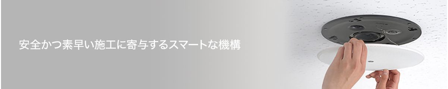 「Anti-Drop Tab」によりスピーカー本体を天井に確実に仮留めすることができ、以降の作業を安全に行うことができます。またリリースレバーが付いているため、天井からの取り外しもスムーズに行うことができます。(VXC2FB/VXC2FWは非対応)
