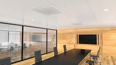 RM-CGは4本の自動追従するビームを搭載した天井設置型のマイクロフォンです。話者が発言するだけでビームが音源の方向を検知し追尾し、複数人の同時発話も逃すことなく収音可能です。ビームは完全に自動で動作し、収音位置や範囲を事前に設定調整する必要はありません。