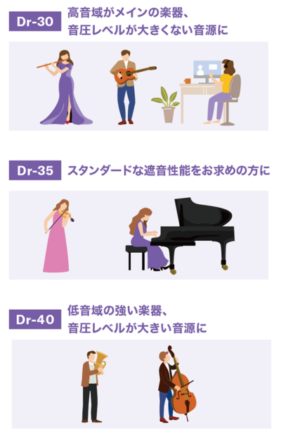 必要な遮音性能はご使用の用途の他、設置される建築物の環境など、さまざまな条件によって変わります。