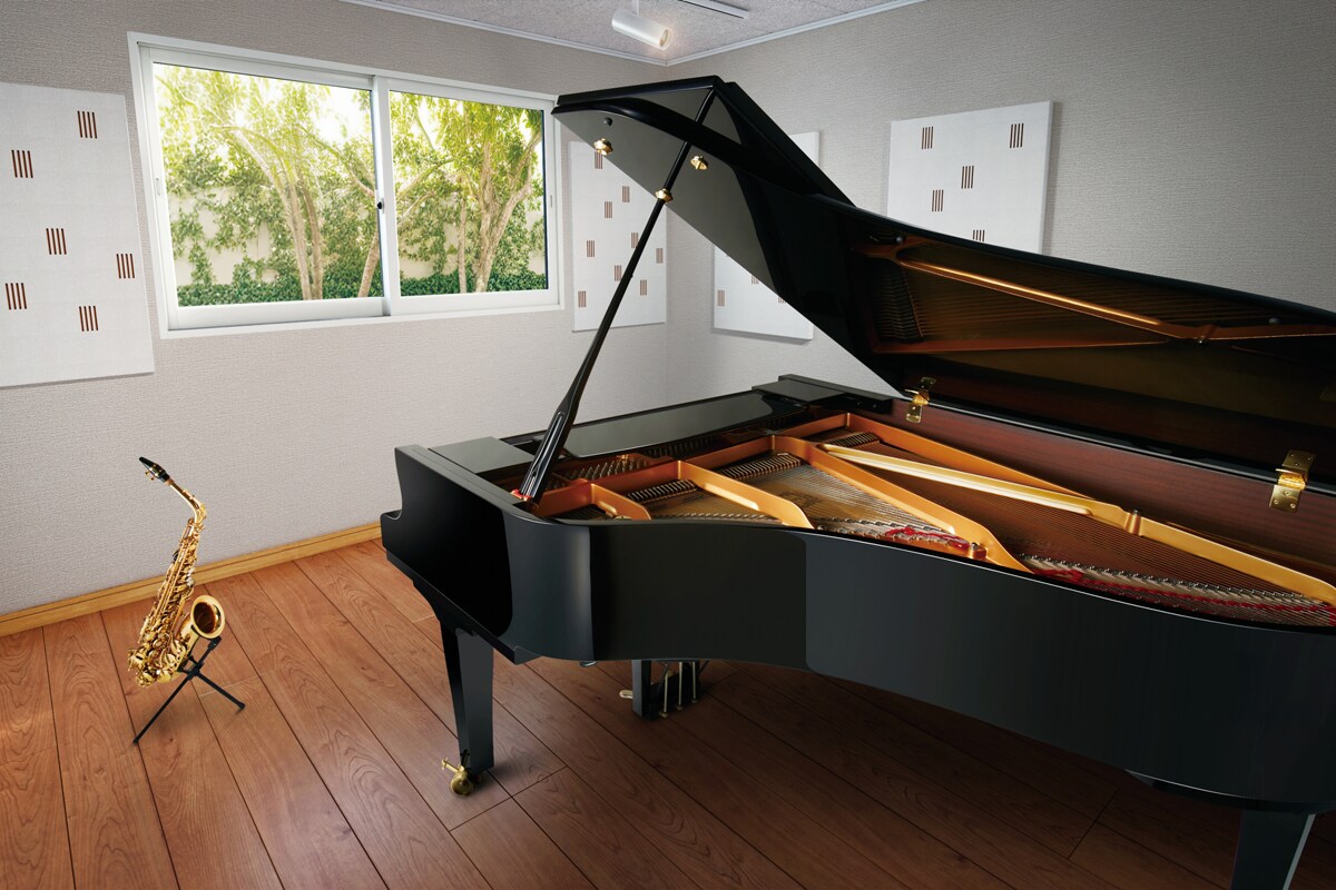 F調音パネルにより音場をコントロールすることで、よりナチュラルで快適な響きの空間に。ご家族でのアンサンブルなど、複数の楽器での演奏も長時間楽しめる環境をご提供します。また、壁紙や床材をコーディネートすることでお好みのインテリアに仕上げることもできます。