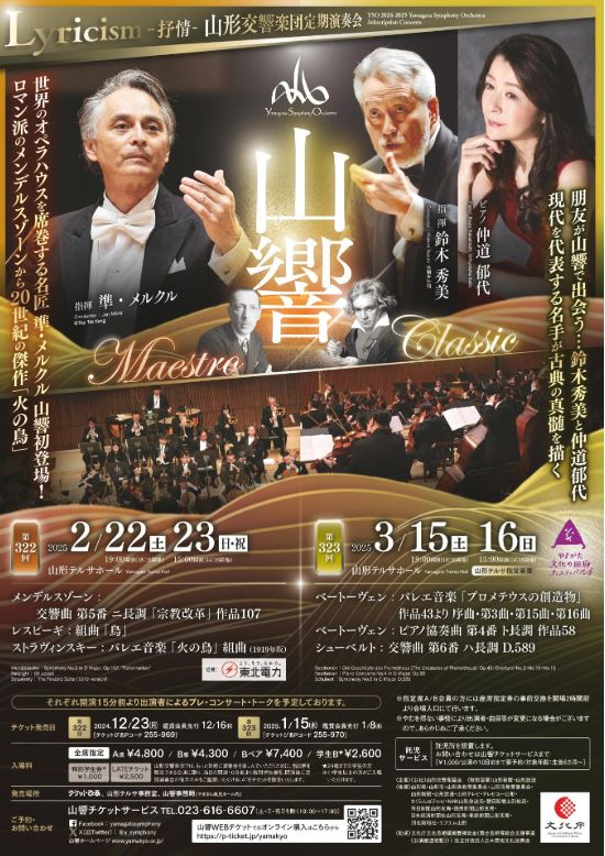 | お問合せ | : | 山響チケットサービス TEL:023(616)6607(月~金(祝日を除く)10:00~17:00) |