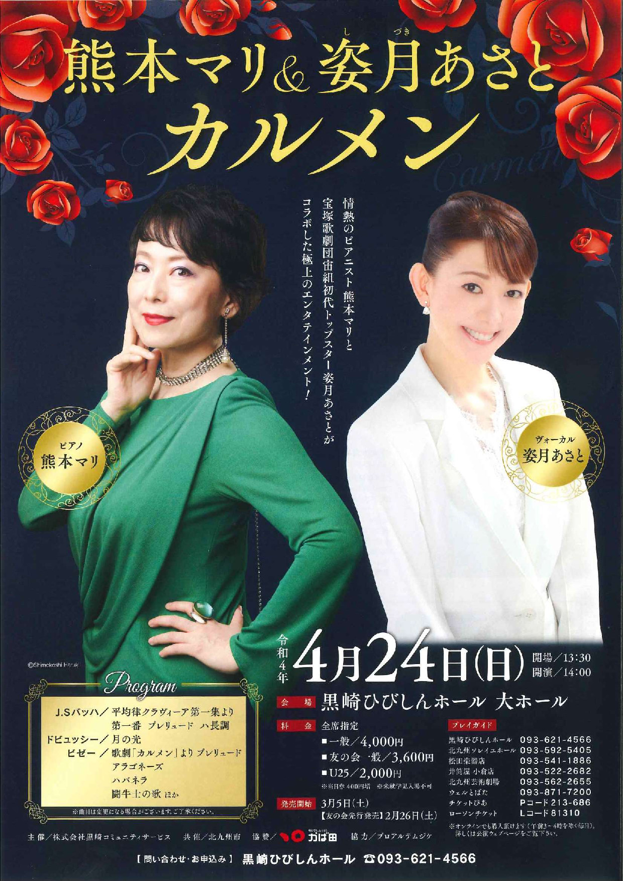 | 料金 | : | 全席指定 一般 4,000円 友の会一般 3,600円 25歳以下 2,000円 当日券 400円増 未就学児不可 |