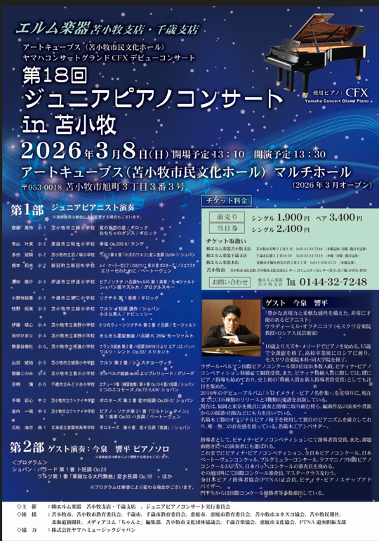 | お問合せ | : | (株)エルム楽器 苫小牧支店 TEL 0144-32-7248 |