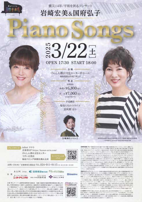 震災14年/平和を祈るコンサート 岩崎宏美&国府弘子 Piano Songs
