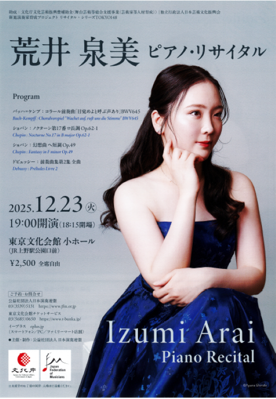 新進演奏家育成プロジェクト・リサイタルに出演する荒井泉美さんに、お話を伺いました。