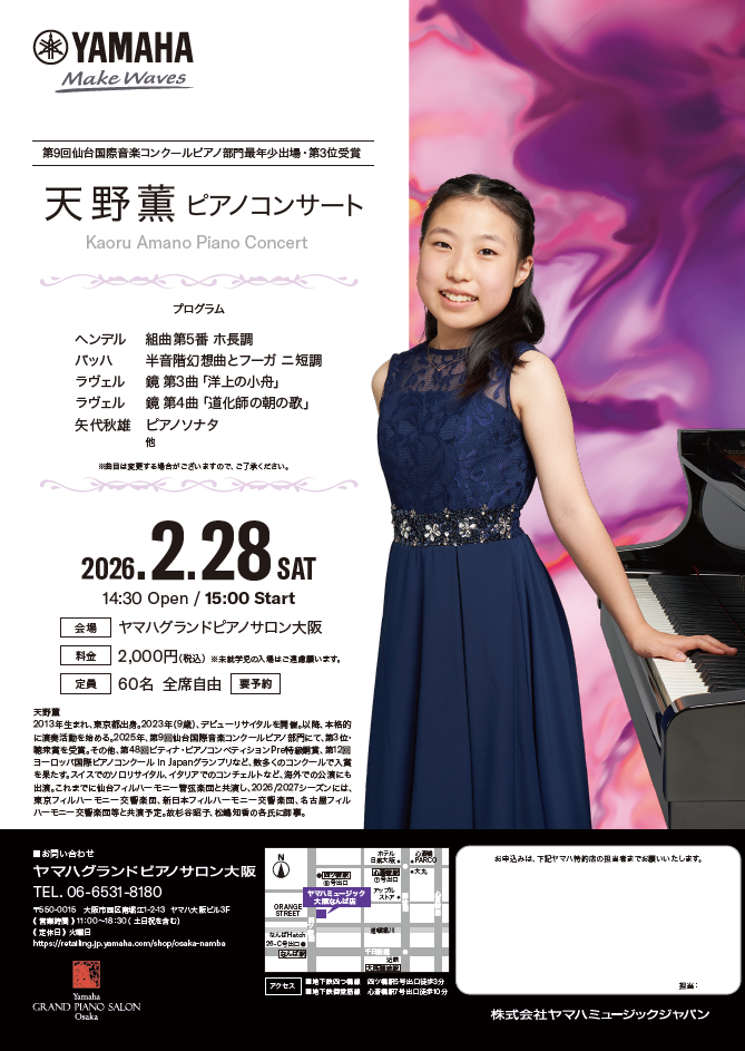 - 会場:ヤマハグランドピアノサロン大阪 3F